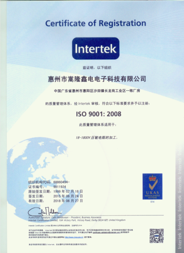 压敏电阻20D安全认证标准及证书号