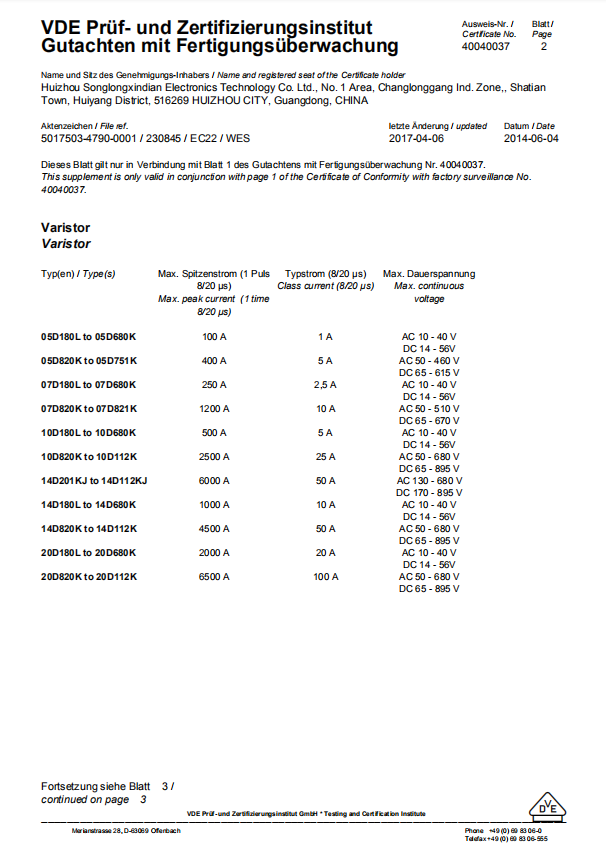 VDE新版高能系列证书