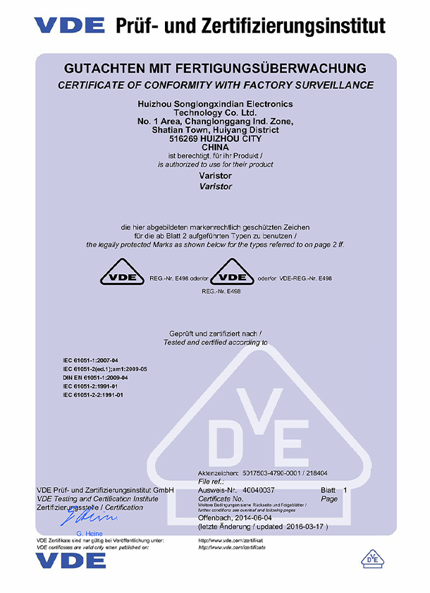 New VDE 125 degree certificate