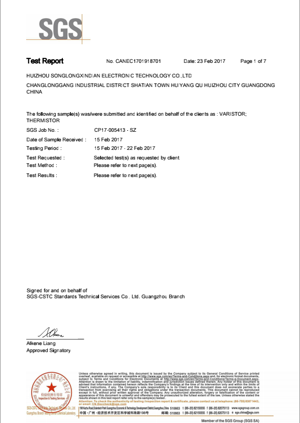 ROHS English report of Songlongxin Electric Co. , Ltd 2017