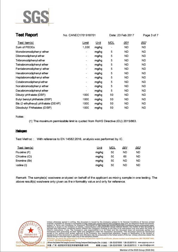 ROHS English report of Songlongxin Electric Co. , Ltd 2017